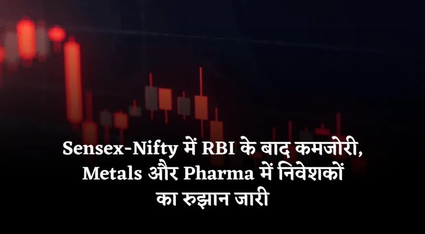 Sensex-Nifty में RBI के बाद कमजोरी, Metals और Pharma में निवेशकों का रुझान जारी
