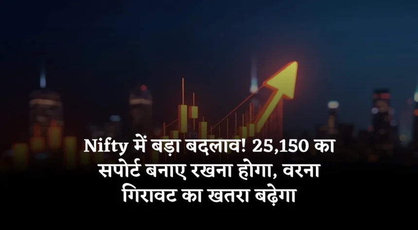 Nifty 50 ने 22 सितंबर को लगातार दूसरे सत्र में गिरावट दर्ज की और लगभग 0.5 प्रतिशत नीचे बंद हुआ। हालांकि, इस गिरावट के बावजूद, इंडेक्स ने 25,150 के ब्रेकआउट जोन को इंट्राडे स्तर पर बचाए रखा, जो 10-दिन के EMA के साथ मेल खाता है। यह समर्थन खास महत्व रखता है क्योंकि 23 सितंबर को साप्ताहिक F&O एक्सपायरी होने वाली है। विशेषज्ञों का मानना है कि फिलहाल बाजार में बुल्स का पलड़ा भारी है और इंडेक्स प्रमुख मूविंग एवरेजेज के ऊपर बना हुआ है। हालांकि, नजदीकी अवधि में कंसोलिडेशन और रेंज-बाउंड ट्रेडिंग की संभावना बनी हुई है। यदि Nifty 25,150 के सपोर्ट स्तर को बनाए रखता है, तो बुल्स इसे 25,450 से 25,500 के बीच ले जाकर 25,700 तक की ओर ले जा सकते हैं। वहीं नीचे की ओर 25,000 से 24,900 के स्तर महत्वपूर्ण सपोर्ट बन सकते हैं। ट्रेडिंग पिवट पॉइंट्स के आधार पर रेसिस्टेंस के स्तर 25,297, 25,340 और 25,409 पर नजर रखनी होगी, जबकि सपोर्ट 25,159, 25,117 और 25,048 के आसपास है। तकनीकी चार्ट में देखा जाए तो Nifty ने एक Bearish Candle बनाई है, जिसमें लंबी Upper Shadow और छोटी Lower Shadow है। यह बताता है कि ऊंचे स्तरों पर बिकवाली का दबाव है, लेकिन निचले स्तरों पर खरीदारी भी जारी है