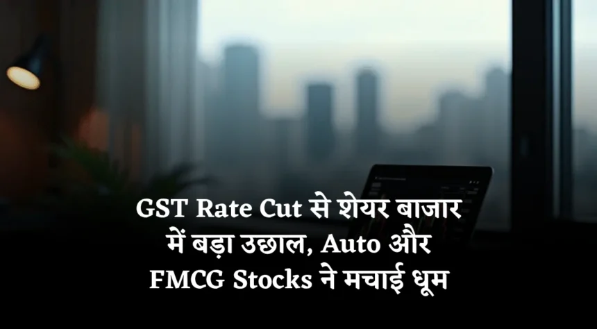 भारतीय शेयर बाजार ने गुरुवार को जबरदस्त तेजी के साथ शुरुआत की। सरकारी स्तर पर GST दरों में कटौती के फैसले के बाद Auto और FMCG सेक्टर्स में जबरदस्त रैली देखने को मिली। GST Council ने बुधवार को अपनी बैठक में व्यापक सुधार करते हुए कई सामान्य उपयोग की वस्तुओं जैसे hair oil, corn flakes, टीवी, personal health और life insurance policies पर GST दरों को कम कर दिया। नए नियम 22 सितंबर से लागू होंगे, जो नवरात्रि के पहले दिन है। GST दरों को केवल दो स्लैब में सीमित कर दिया गया है – 5% और 18%। सुबह 9:24 बजे S&P BSE SENSEX ने 586.32 अंक या 0.73% की तेजी के साथ 81,154.03 के स्तर को छुआ। वहीं NSE का NIFTY50 160.25 अंक या 0.65% चढ़कर 24,875.30 पर पहुंच गया। सेक्टोरल स्तर पर, Nifty Auto ने सबसे अधिक तेजी दिखाई, जो 2.35% बढ़ा। इसके बाद Nifty FMCG में 1.52% और Nifty Realty में 1% की बढ़त दर्ज की गई। हालांकि, Nifty Metal और Nifty Oil and Gas सेक्टर्स में थोड़ी गिरावट आई, क्रमशः -0.26% और -0.12%
