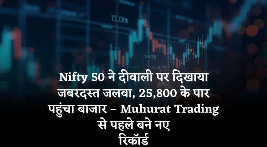 Nifty 50 ने दीवाली के त्योहार पर लगातार चौथे दिन जबरदस्त प्रदर्शन करते हुए 25,800 के महत्वपूर्ण स्तर को पार कर लिया है। 20 अक्टूबर को हुई ट्रेडिंग में यह इंडेक्स करीब आधे प्रतिशत की बढ़त के साथ बंद हुआ, जिससे बाजार में त्योहार का उत्साह साफ झलक रहा था। इस महीने अब तक Nifty 50 ने 1,300 से अधिक प्वाइंट की तेजी दर्ज की है, जो निवेशकों के लिए एक सकारात्मक संकेत है। बाजार की तकनीकी स्थिति पर नजर डालें तो Nifty ने एक बार फिर उच्चतम उच्च और उच्चतम निम्न का पैटर्न कायम रखा है, जो एक मजबूत बुलिश ट्रेंड की निशानी है। हालांकि, उच्च स्तरों पर प्रॉफिट बुकिंग का दबाव भी देखा गया, लेकिन इंडेक्स ने 25,700 के नीचे गिरने से बचाव किया है। विशेषज्ञों के अनुसार, यदि Nifty 25,700 से ऊपर बना रहता है, तो 25,950 से 26,000 के बीच का क्षेत्र अगले कुछ ट्रेडिंग सत्रों में लक्ष्य बन सकता है। वहीं, नीचे की ओर 25,500 का स्तर अब भी सबसे अहम सपोर्ट माना जा रहा है। तकनीकी संकेतकों की बात करें तो Nifty 50 ने रोजाना चार्ट पर एक छोटा बुलिश कैंडल बनाया है, जिसमें उपरी साया लंबा है। इसका मतलब है कि बाजार में तेजी तो है, लेकिन ऊपर की ओर रुकावट भी महसूस हो रही है। इसके अलावा, Relative Strength Index (RSI) 71.8 तक पहुंच गया है, जो मजबूत मोमेंटम को दर्शाता है, जबकि MACD भी अपने ऊपर की ओर रुख को जारी रखे हुए है