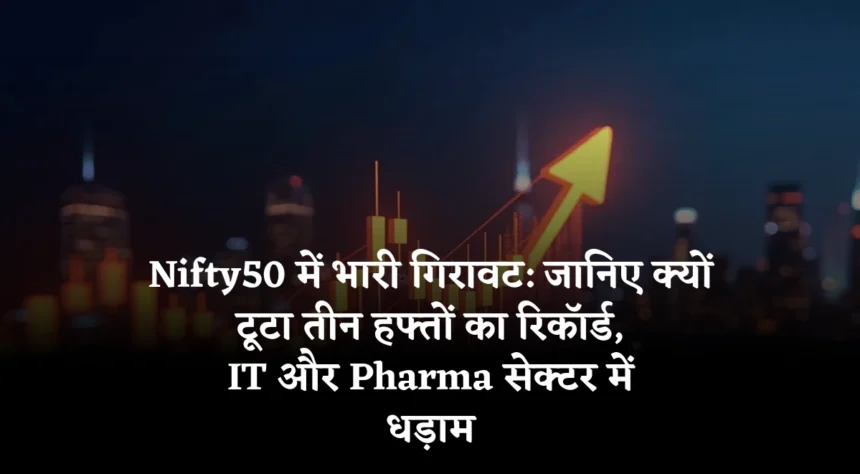 इस सप्ताह भारतीय शेयर बाजार में भारी दबाव देखा गया, जिससे Nifty50 ने तीन हफ्तों की बढ़त का सिलसिला तोड़ दिया। बाजार में बिकवाली का दौर जारी रहा और Nifty50 में 672.35 अंक यानी करीब 2.65 प्रतिशत की गिरावट दर्ज की गई, जो इसे 24,654.70 के स्तर पर बंद कर गई। इसी तरह BSE Sensex भी 2199.77 अंक या 2.66 प्रतिशत टूटकर 80,426.46 पर आ गया। इस दौरान BSE के मिडकैप, लार्जकैप और स्मॉलकैप इंडेक्स लगभग 3 से 4.5 प्रतिशत तक लुढ़क गए। इस सप्ताह विदेशी संस्थागत निवेशकों (FIIs) ने लगातार 13वें हफ्ते भी बाजार से बिकवाली जारी रखी और कुल मिलाकर 19,570.03 करोड़ रुपये के शेयर बेचे। वहीं घरेलू संस्थागत निवेशकों (DIIs) ने 24वें हफ्ते लगातार खरीदारी जारी रखी और 17,411.40 करोड़ रुपये के शेयर खरीदे। महीने के आंकड़ों पर नजर डालें तो FIIs ने कुल 30,141.68 करोड़ रुपये के शेयर बेचे, जबकि DIIs ने 55,736.09 करोड़ रुपये की खरीदारी की। बाजार में दबाव के पीछे कई वजहें हैं। प्रमुख कारणों में अमेरिका द्वारा फार्मा सेक्टर पर नए टैरिफ लगाने का निर्णय, H1B वीजा शुल्क में वृद्धि, निरंतर जारी व्यापारिक चिंताएं और एफआईआई की बिकवाली प्रमुख हैं। खासतौर पर IT और Pharma सेक्टर में भारी गिरावट देखी गई
